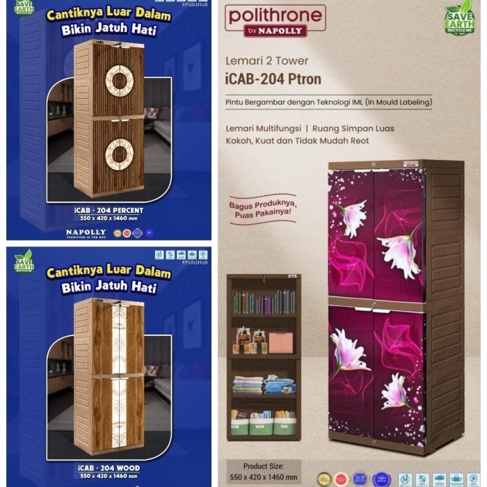 Lemari Napolly Icab 204 ptron , ICAB 204 TEAK WOOD , ICAB 204 PERCENT CERMIN PLASTIK KOKOH