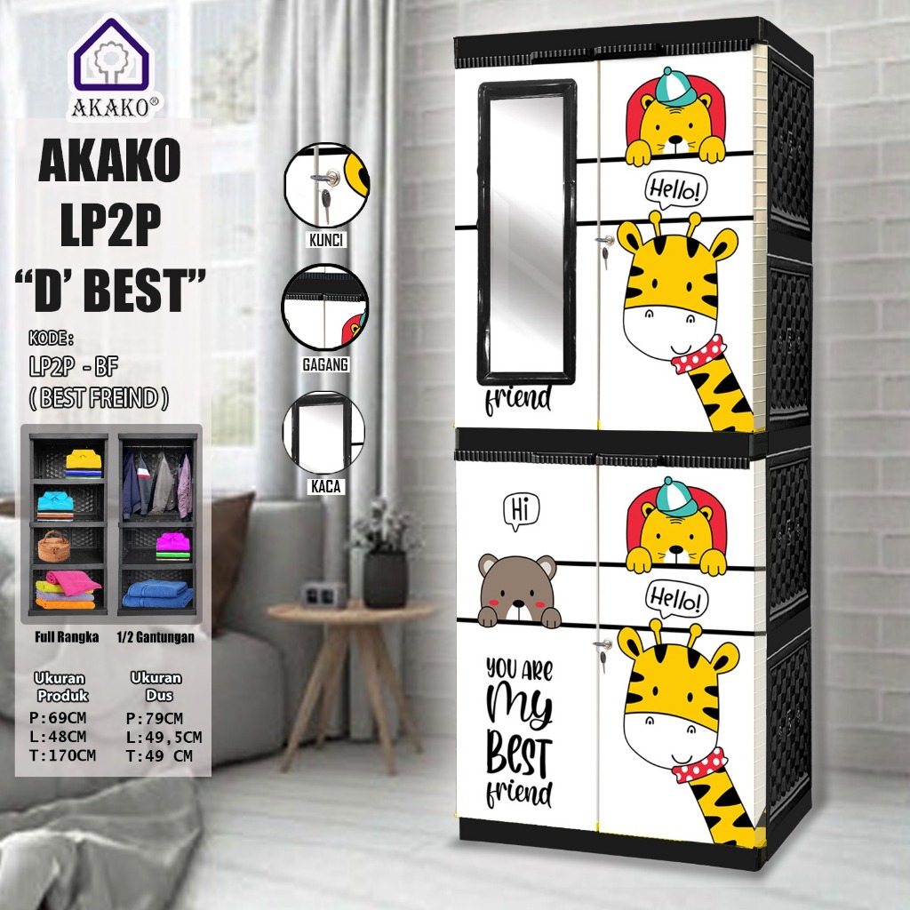 AKAKO Lemari Pakaian Plastik Akako Tiptop JUMBO 2 Pintu Motif Gantung Rak Kaca Kunci Printing License