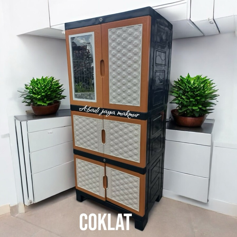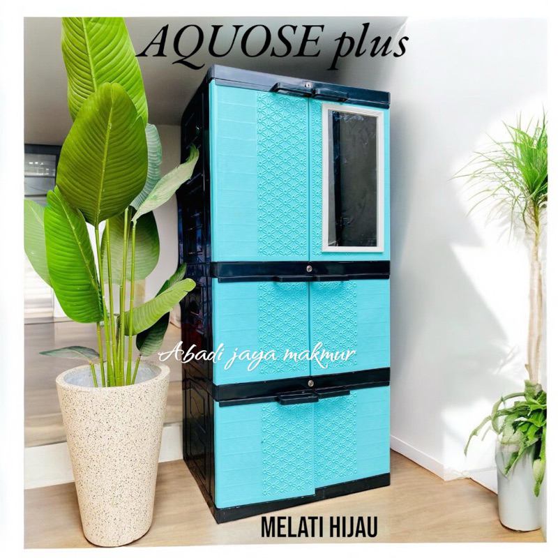 Lemari pakaian plastik jumbo full kunci + kaca aquose plus