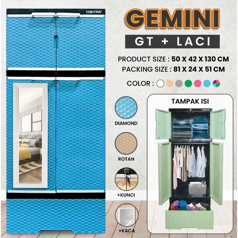 Lemari Pakaian Plastik Serbaguna GantunganRak Cermin Laci Tabitha Gemini