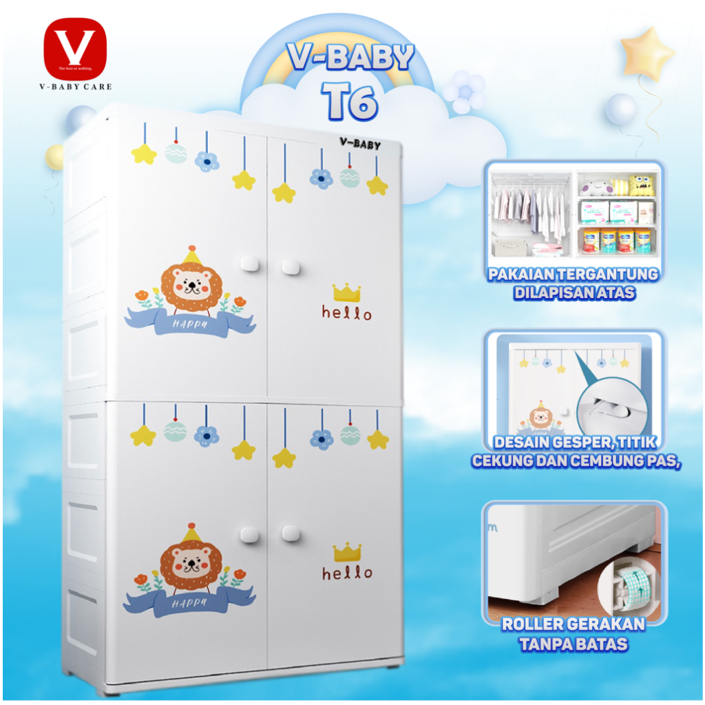 VBABY CARE Lemari Pakaian Anak 65CM Lemari bayi Plastik Plastic Storage Cabinet Lemari T6