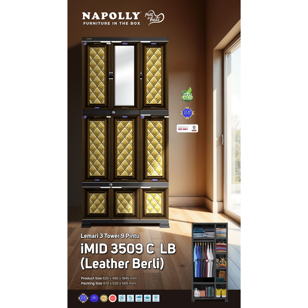 MIDICAB5412 DC KACA CERMIN KUNCI JUMBO Lemari Pakaian Plastik GANTUNG RAK Napolly 5 PINTU