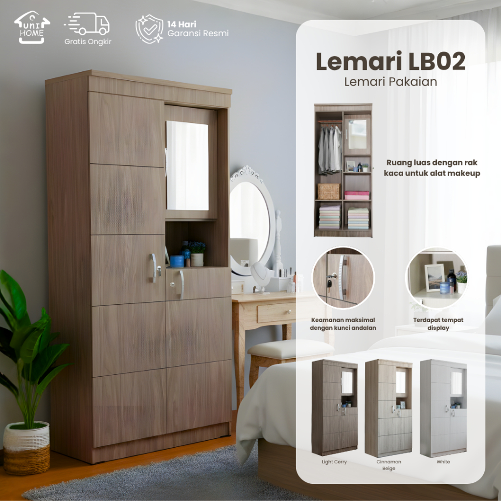 Uni Home Lemari Pakaian 2 Pintu Minimalis Rak LB02
