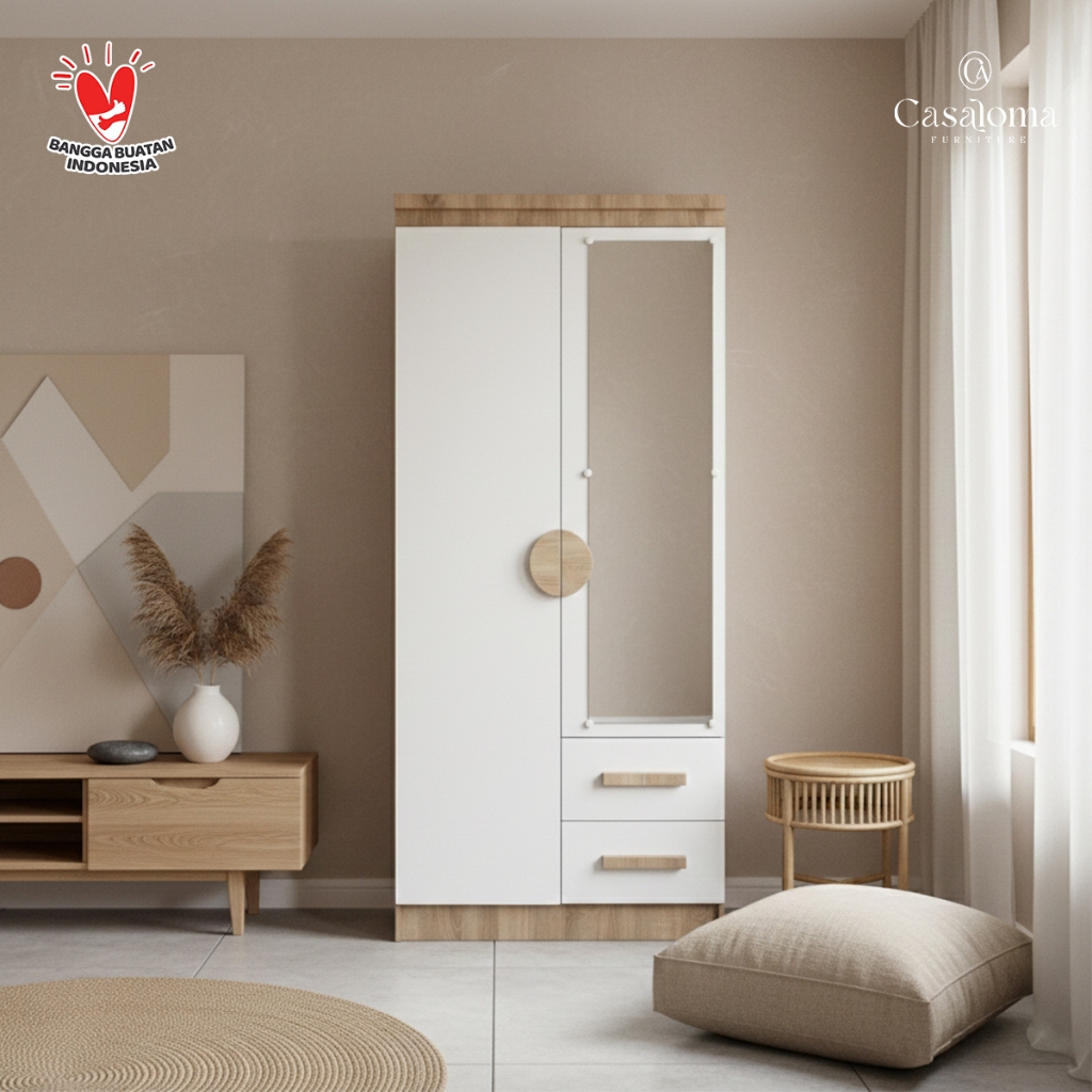 Casaloma Furniture Lemari Pakaian 2 Pintu Minimalis Paket Meja Rias Elegan Moderen