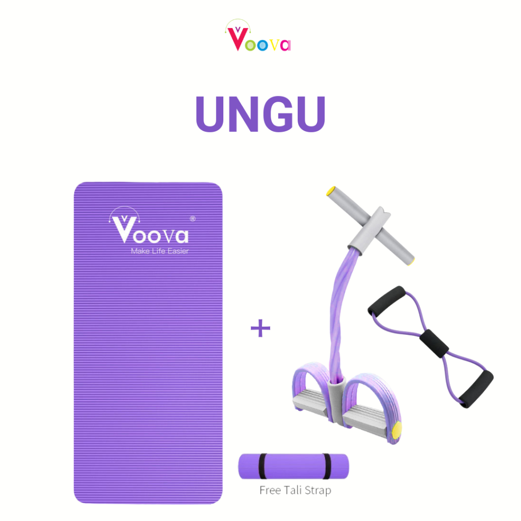 VOOVA 3 IN 1 Set Olahraga/ Set Yoga/ Paket Lengkap Alat Olahraga/ Matras dengan Tummy Trimmer dan Tali Yoga Elastis Nyam