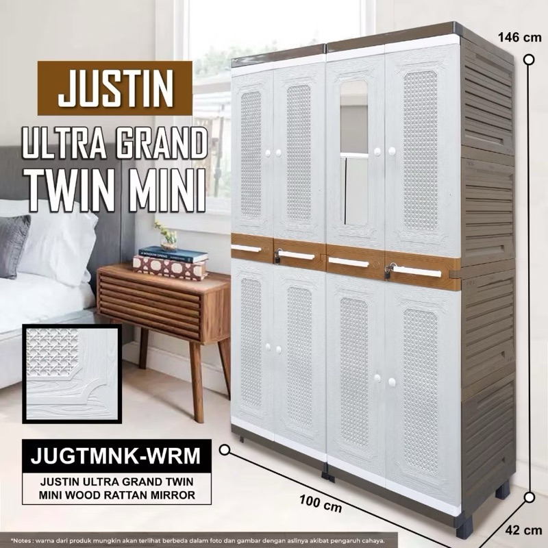 CARGO LEMARI PLASTIK 4 PINTU JUSTIN ULTRA GRAND TWIN MINI KUNCI PRINTINGLEMARI PLASTIK KUNCI