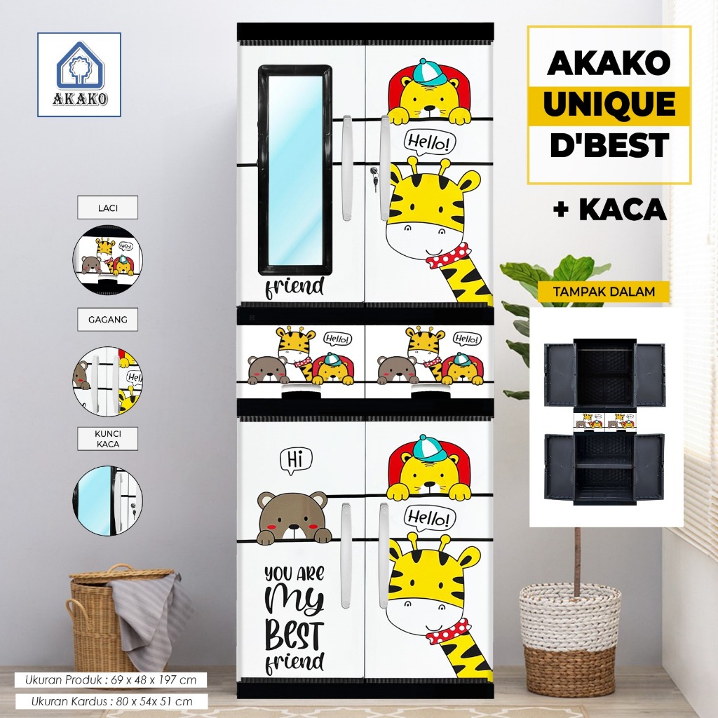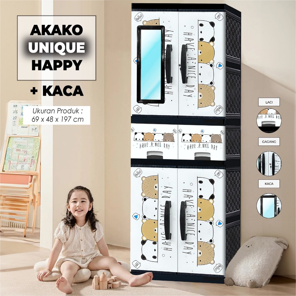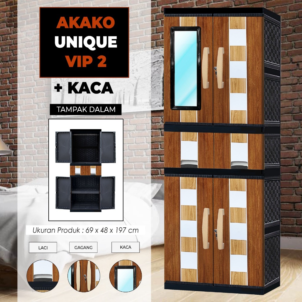 AKAKO LEMARI PAKAIAN LEMARI PLASTIK 2 PINTU LEMARI JUMBO GANTUNG + RAK AKAKO UNIQUE VIP MOTIF PRINTING