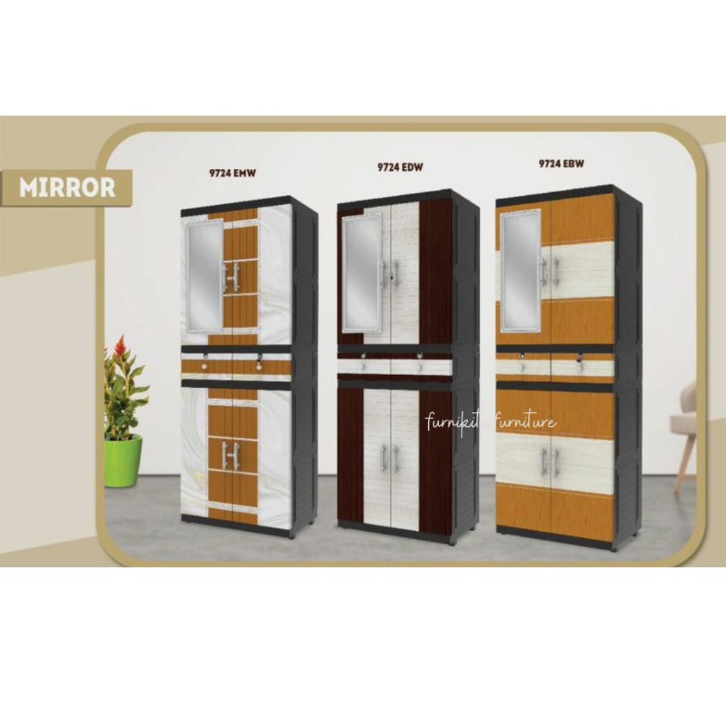 NAIBA JUMBO LEMARI PAKAIAN PLASTIK + LACI 9724 KACA FULL RAK