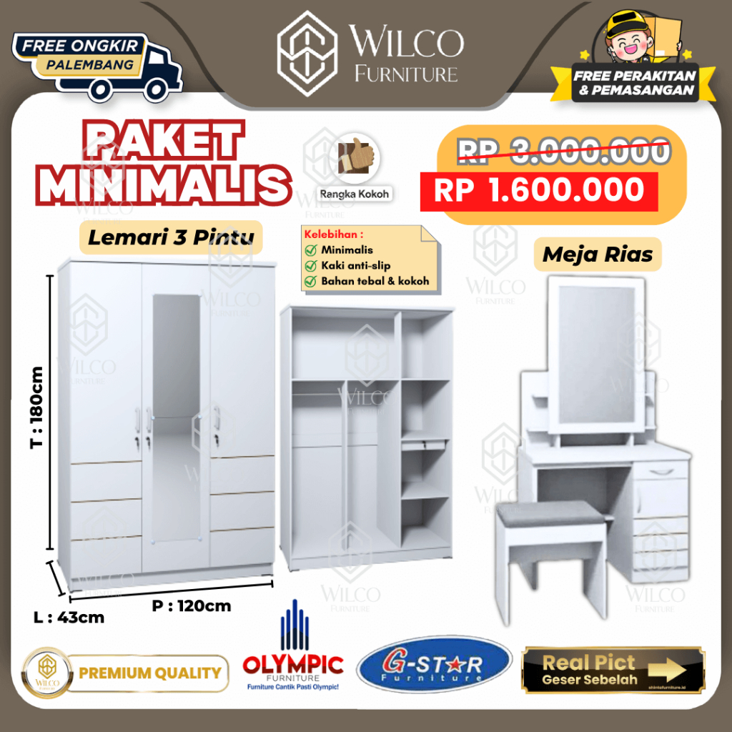 Paket Meja Rias Lemari Pakaian 3 Pintu Murah Furniture Palembang Paket G Lemari Meja Rias