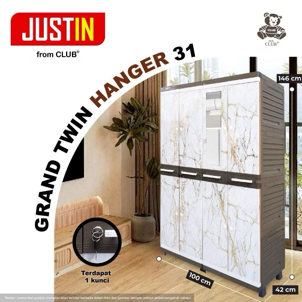 CARGO CLUB Plastik Justin Ultra Grand Twin Mini Lemari Plastik Pakain Printing Lemari Plastik 4 Pintu