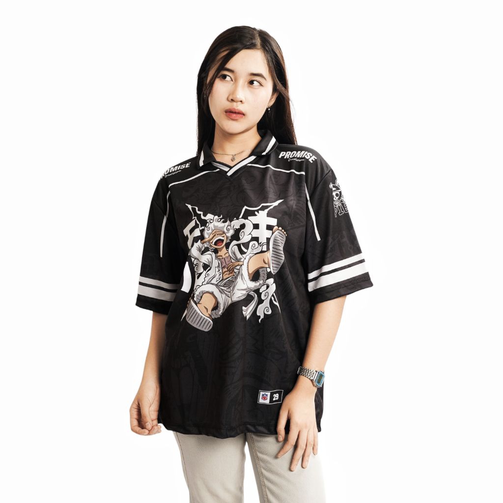 Jersey Boxy Oversize Jumbo PROMISE Onepiece Luffy Gear 5 Vintage Skena Unisex Pria Wanita Sport Big Size Hitam Putih