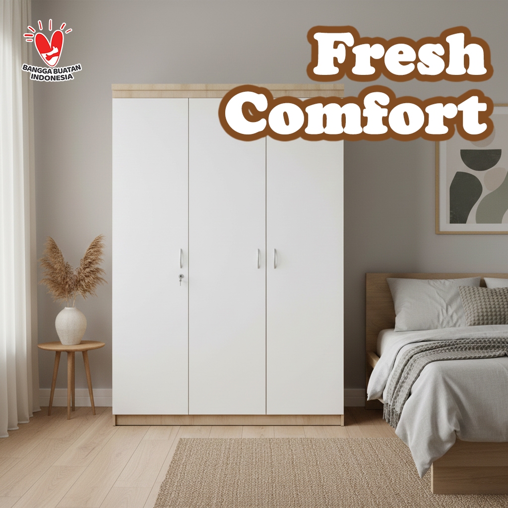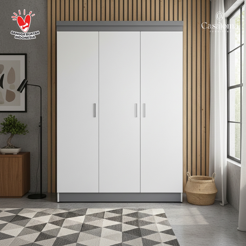 Casaloma Furniture Lemari pakaian 3 Pintu Minimalis Murah Japandi Elegan
