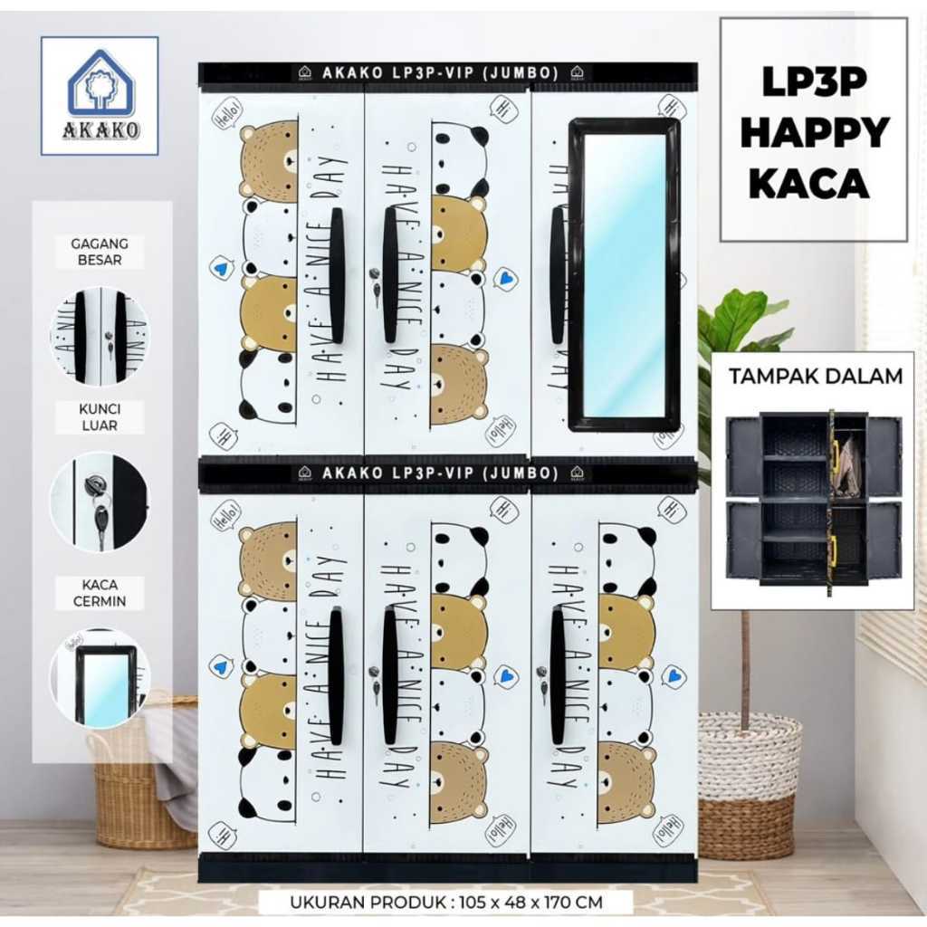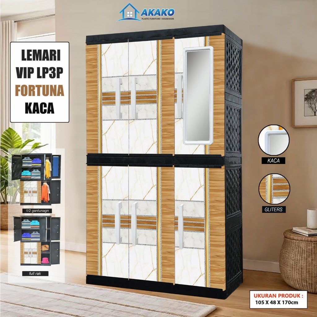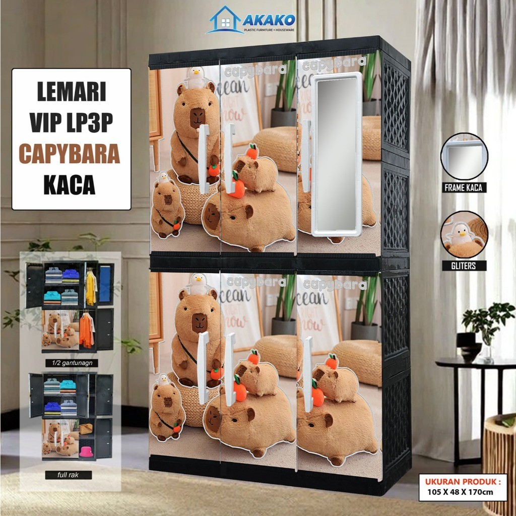 AKAKO Lemari Pakaian Gantung 3 Pintu Jumbo VIP + Rak + Kaca + Kunci Printing