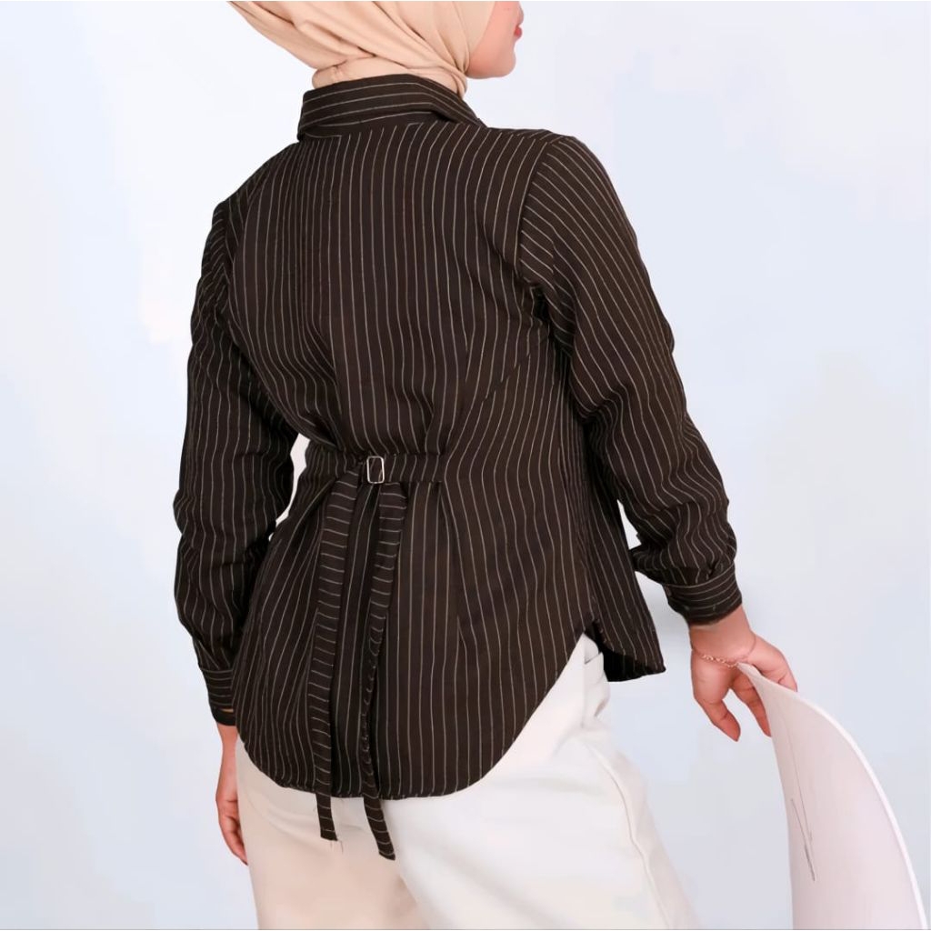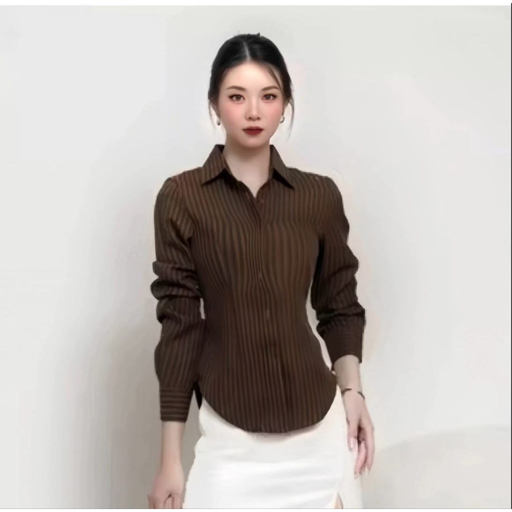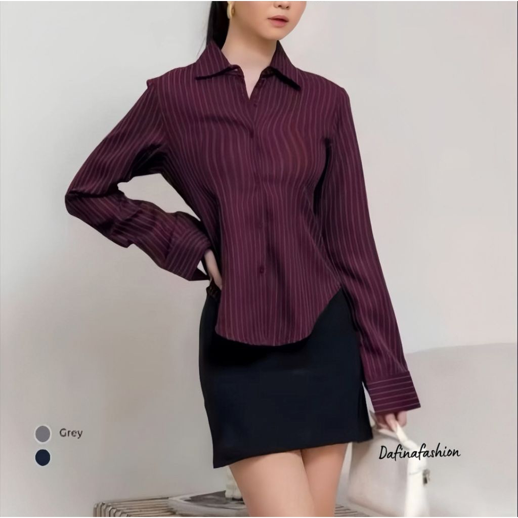 Kemeja Atasan Wanita Motif Salur Garis Stripe Slim Fit Body - Wispei Working Baby - Luna Stripe Terlaris