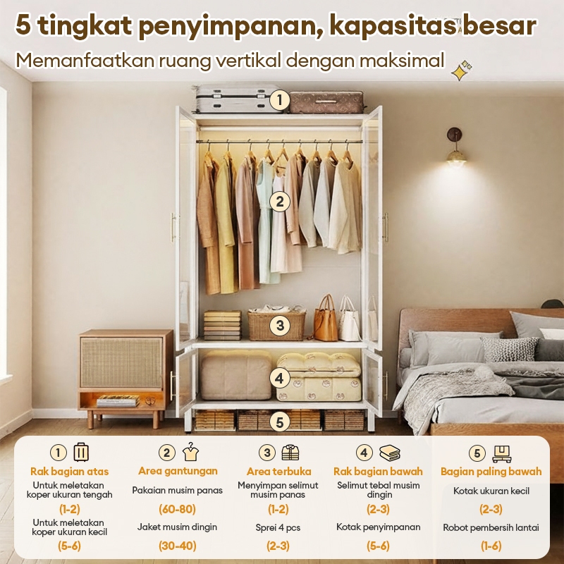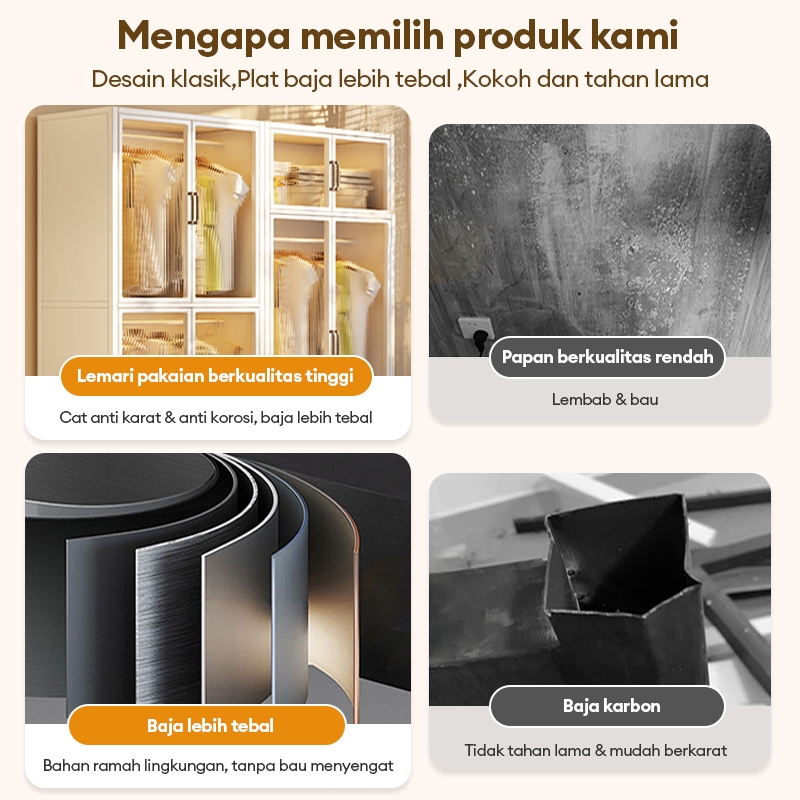 LEMARI BAJU MINIMALIS 2 PINTUANTI DEBUKapasitas Besar, Material Baja Kokoh, Desain Tertutup Multifungsi