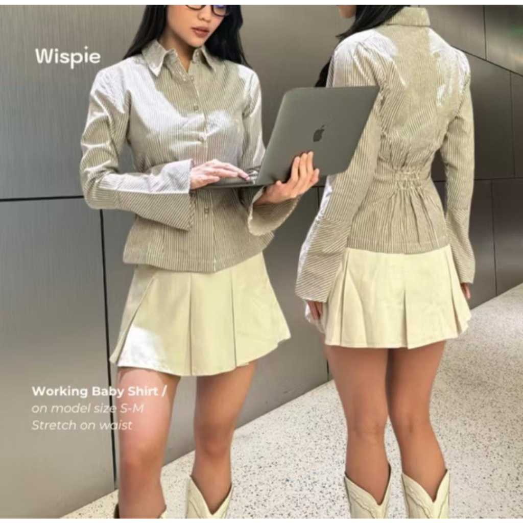 Karet - KEMEJA Wispie Working Baby Shirt | fitted shirt kemeja salur kantor kerja wanita lengan panjang formal slimfit korean office siren