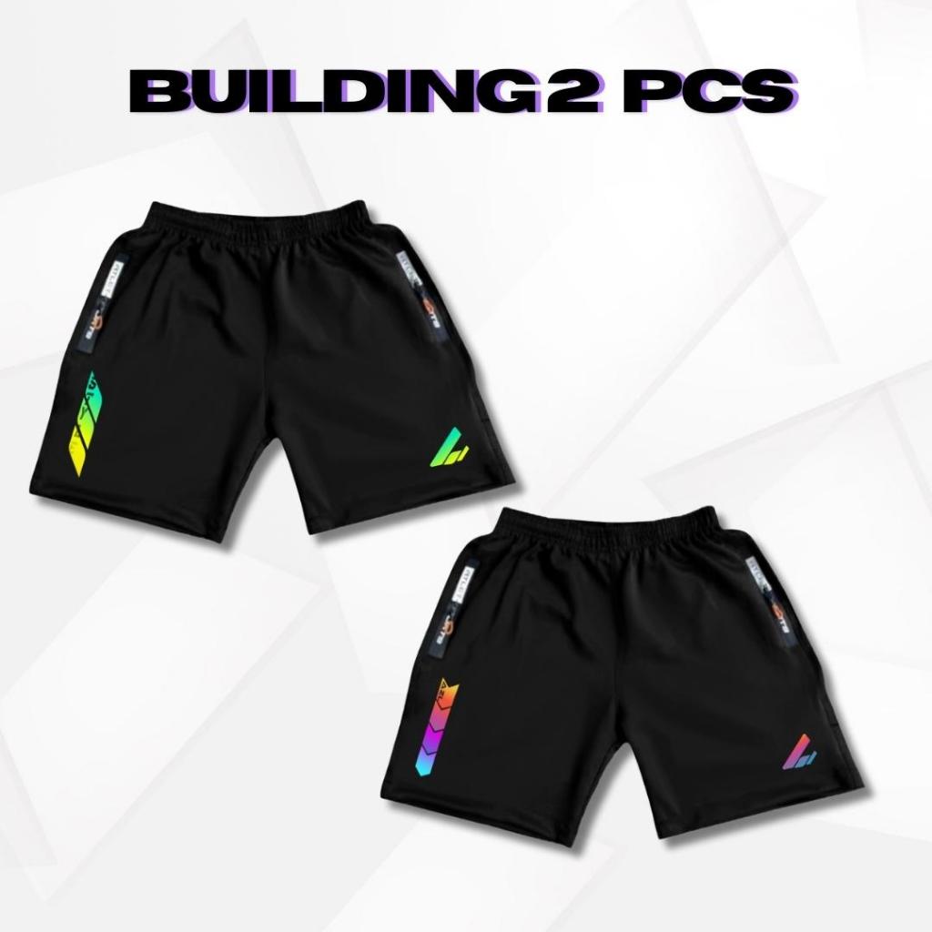 Celana Pendek Olahraga Scuba Misty Saku Resleting Waterproof DTF Rainbow Running Jogging Gym Sport