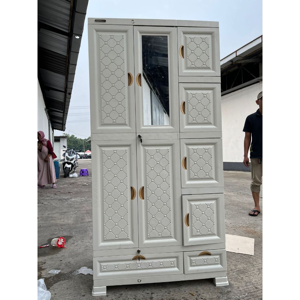 NAPOLLY Lemari Plastik JUMBO BESAR KACA CERMIN KUNCI GANTUNG TEBAL KOKOH