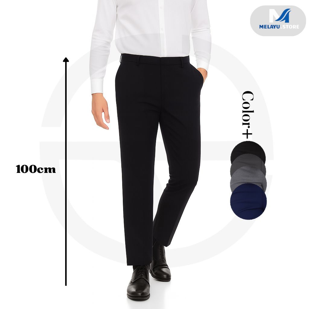 CELANA BAHAN KERJA FORMAL KANTOR PANJANG HITAM DASAR PRIA SLIMFIT