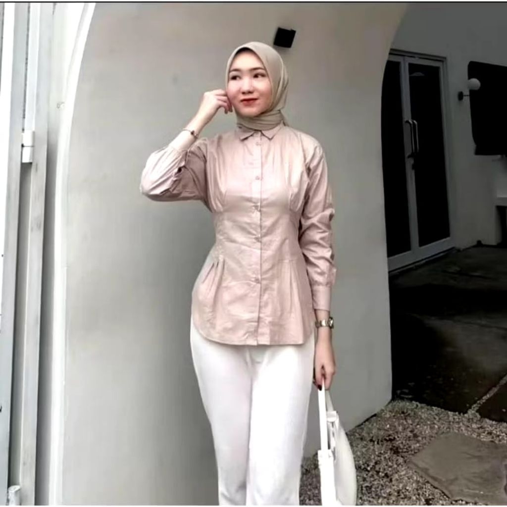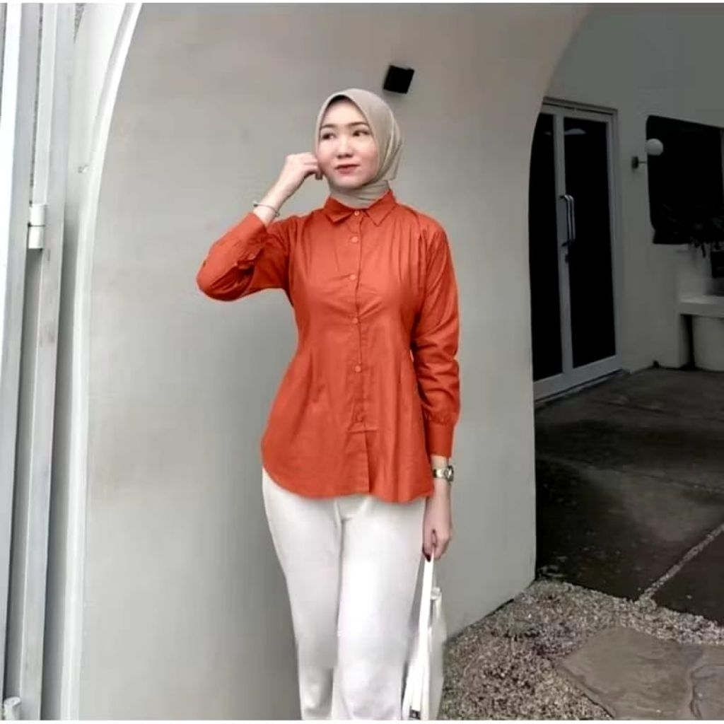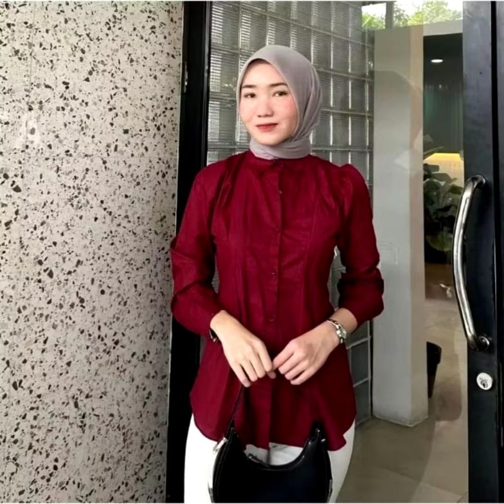 Kemeja Wanita Luna Top Slevee LD 105cm Dan 115 cm Matt Katun Premium Kemeja Wanita Press Body