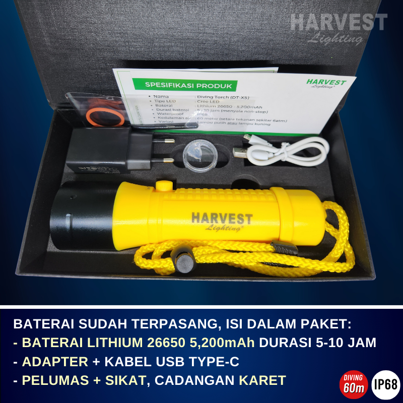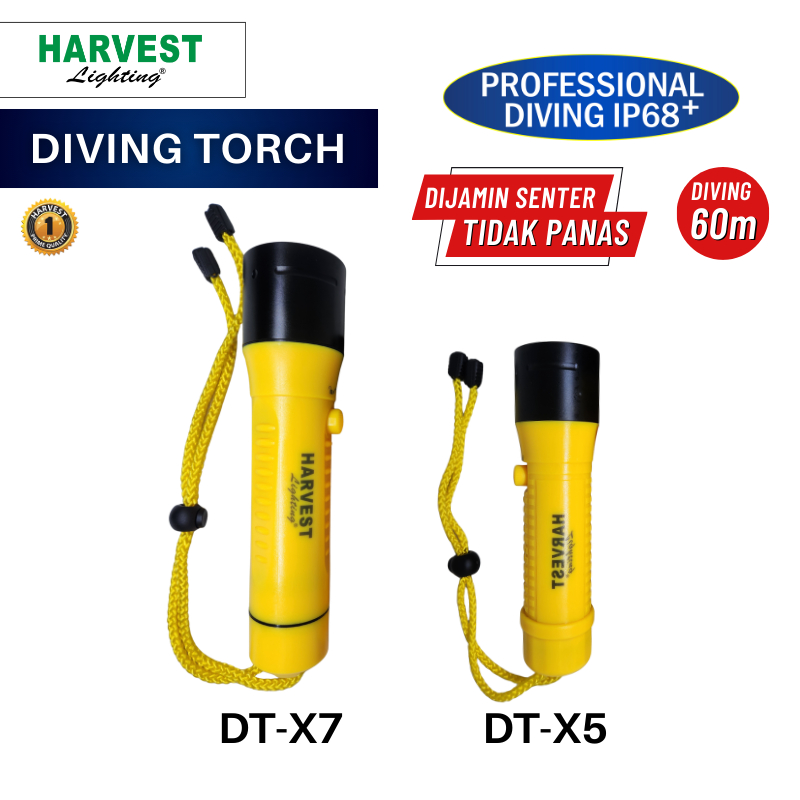 Harvest Lighting Senter Selam Diving Torch DT-X5 DT-X7 Waterproof Flashlight Terang Original Bergaransi