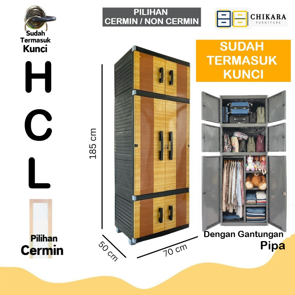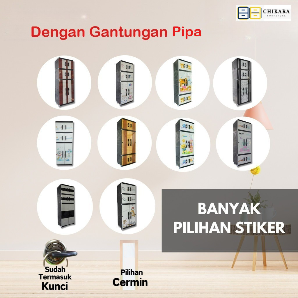 CHIKARA Lemari Pakaian Plastik MR PLAS GANTUNGAN STICKER JUMBO Lemari Susun Karakter Cermin Kunci