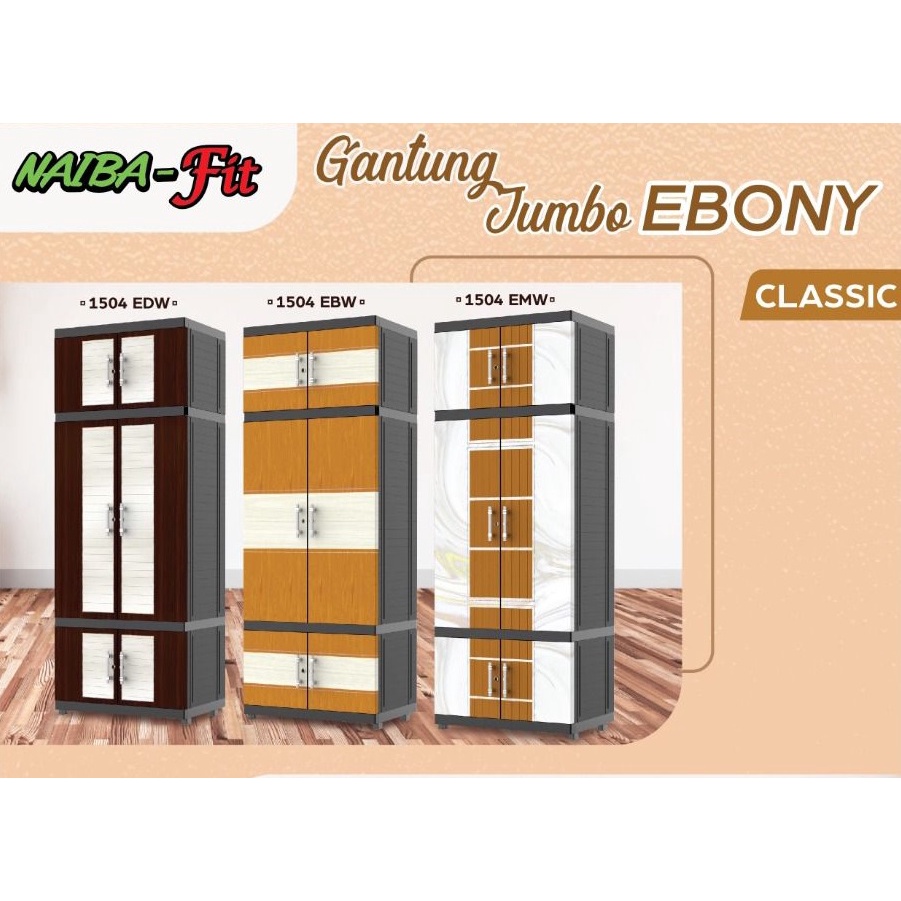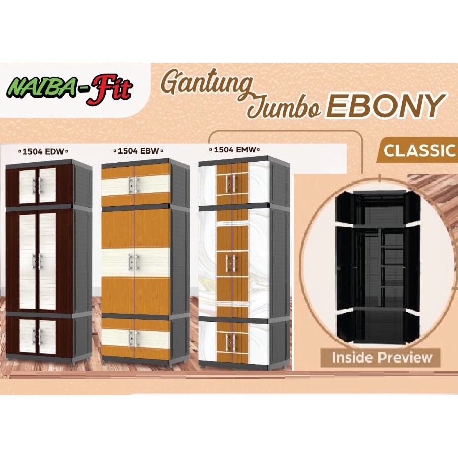 NAIBA LEMARI PAKAIAN PLASTIK FIT GANTUNG CERMIN KACA FULL KUNCI MURAH 1504 1524 1503 1523