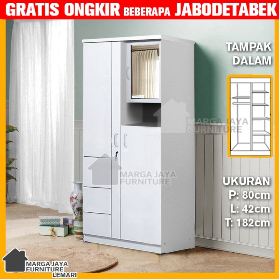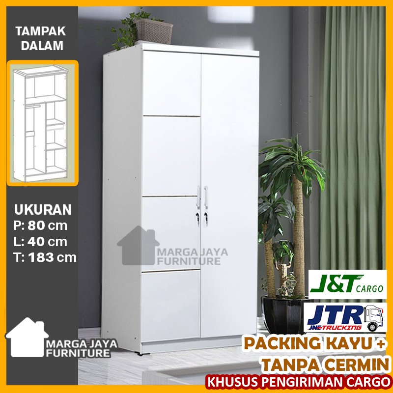 Lemari Pakaian 2 Pintu Putih + Laci Minimalis Termurah Knock Down Baju