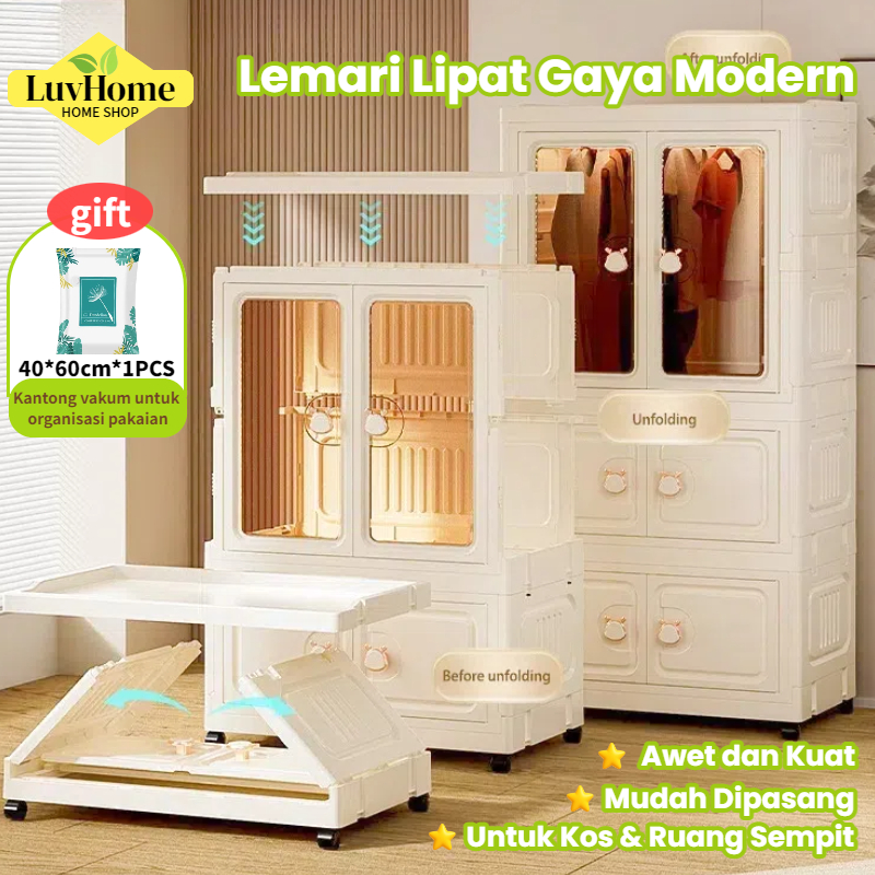 LuvHome Lemari Plastik Pakaian Dapat Dilipat 345 Tingkat Laci Susun Storage Cabinet Plastik Rak Susun