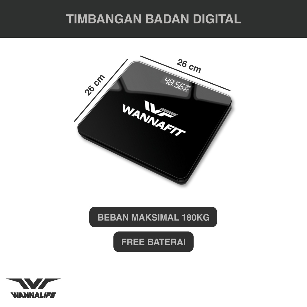 Timbangan Badan Digital Wannafit 180KG Black Digital Scale Beban Load 180 Kg