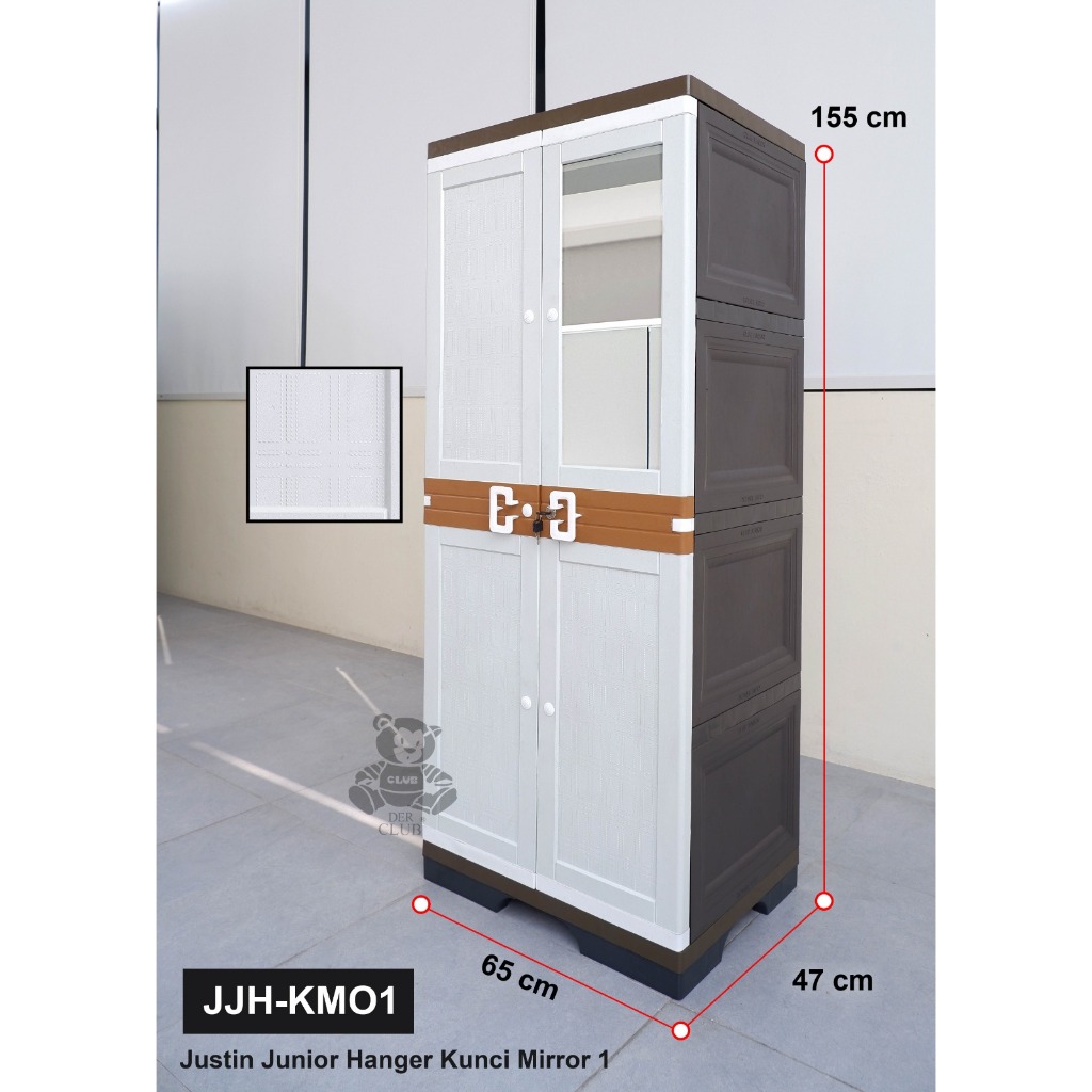 JJH KMO1 KUNCI + KACA RAK + HANGER Justin Junior Hanger Kunci Mirror 1 Lemari Plastik Club 4 Susun Hanger + Rak Lemari Pakaian Club Gantung Rak Baju Modern Minimalis