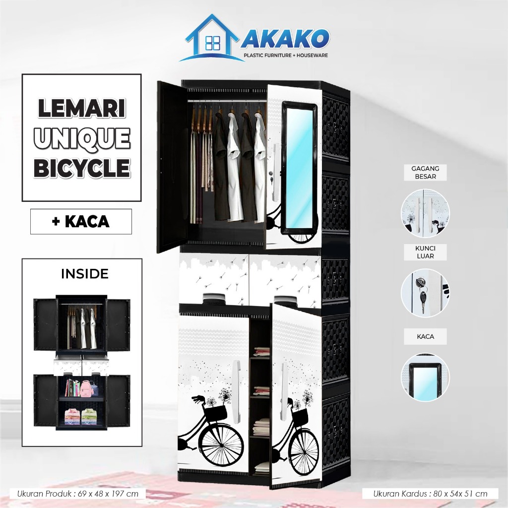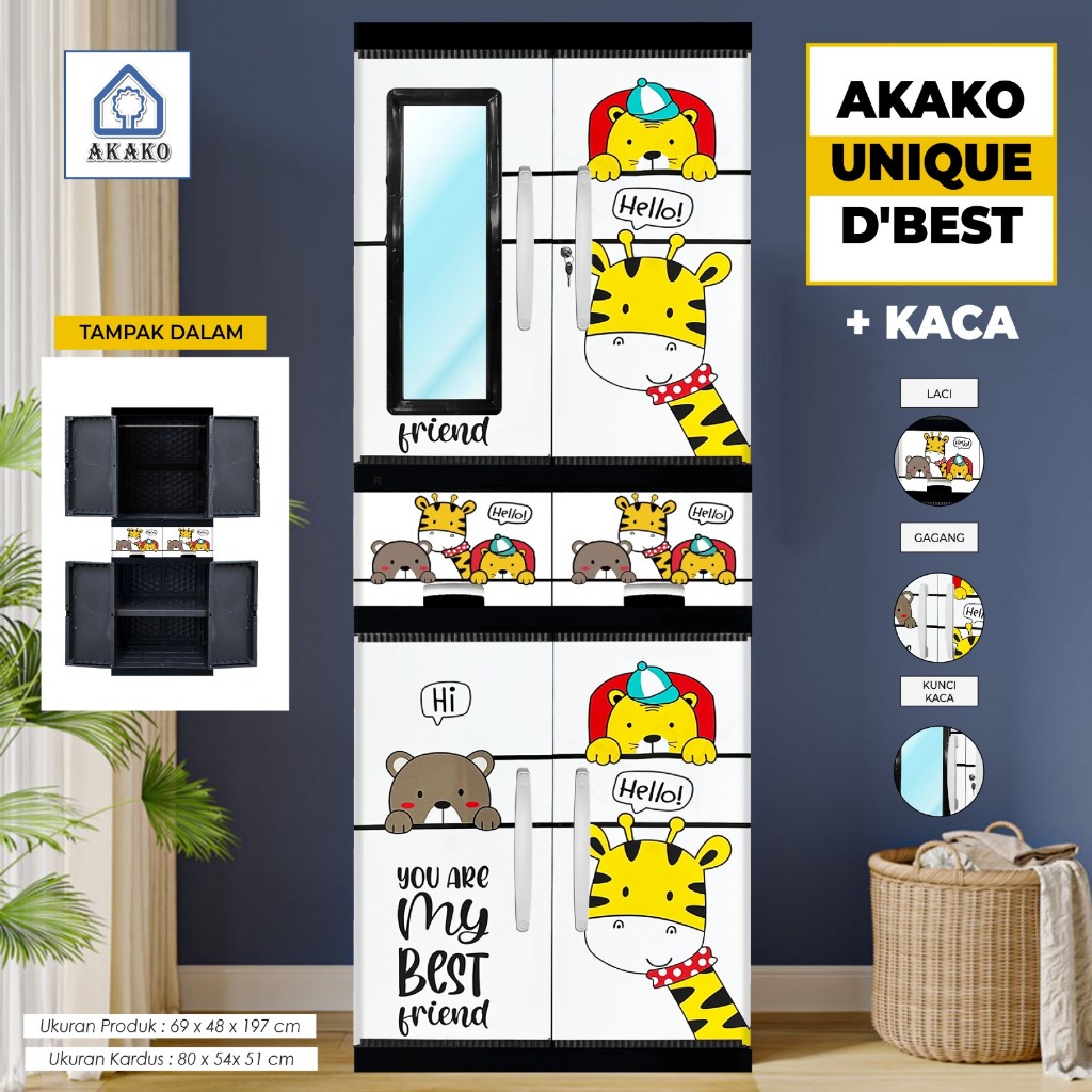 AKAKO LEMARI PAKAIAN LEMARI PLASTIK 2 PINTU LEMARI JUMBO GANTUNG + RAK AKAKO UNIQUE VIP MOTIF PRINTING
