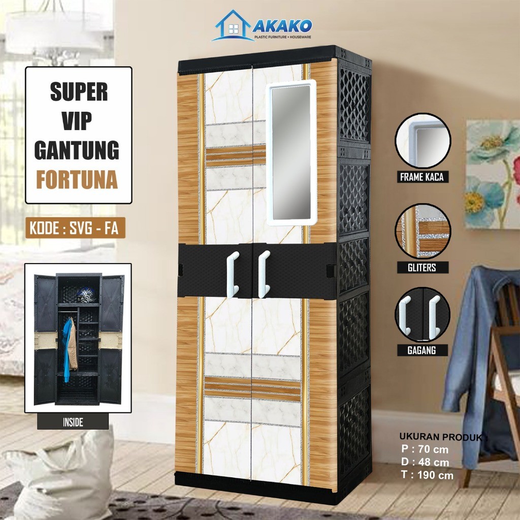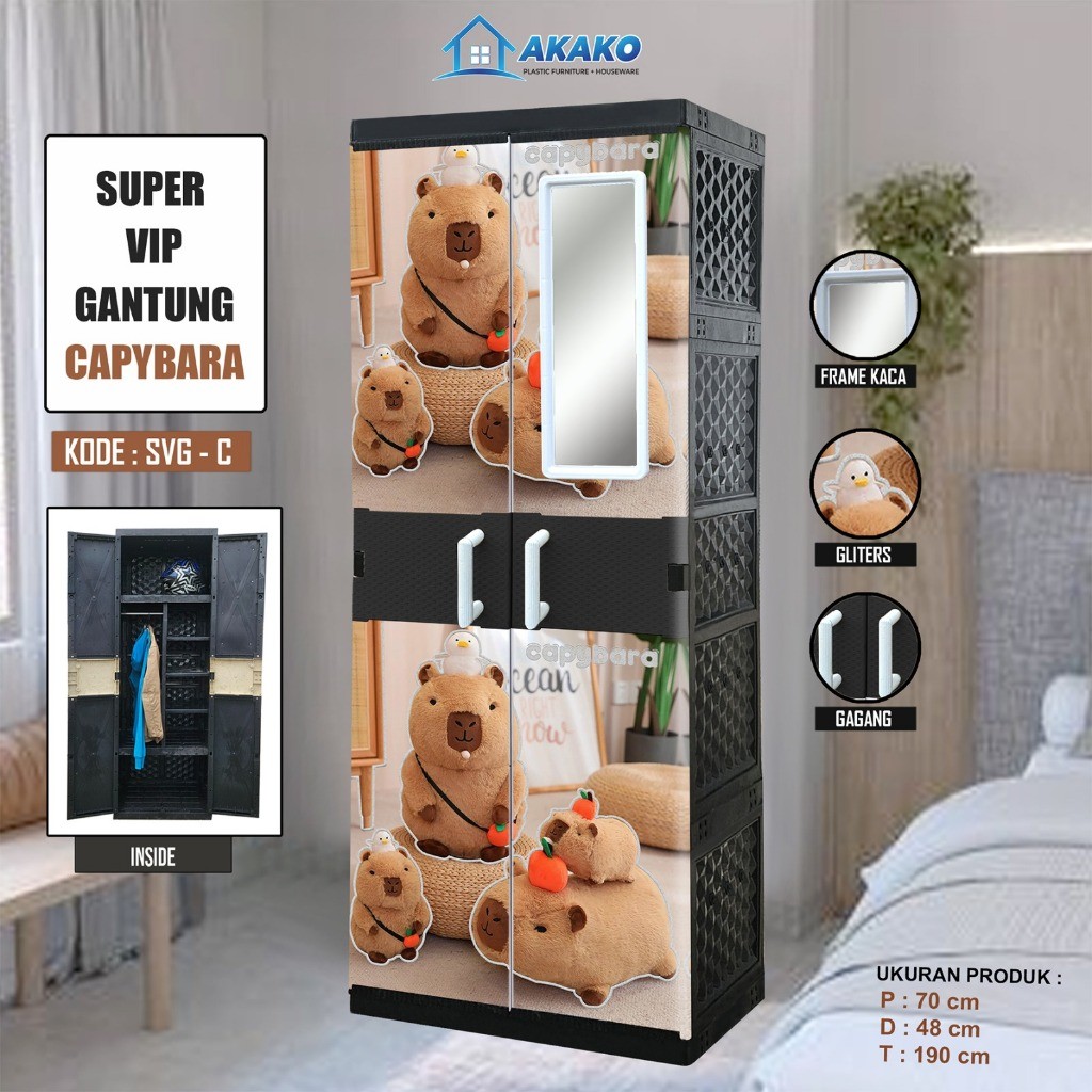 AKAKO Lemari Pakaian 2 Pintu Super VIP Gantung + Rak + Kaca + Kunci Kombinasi Printing