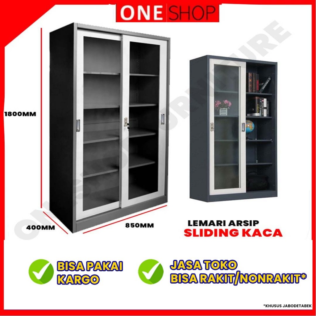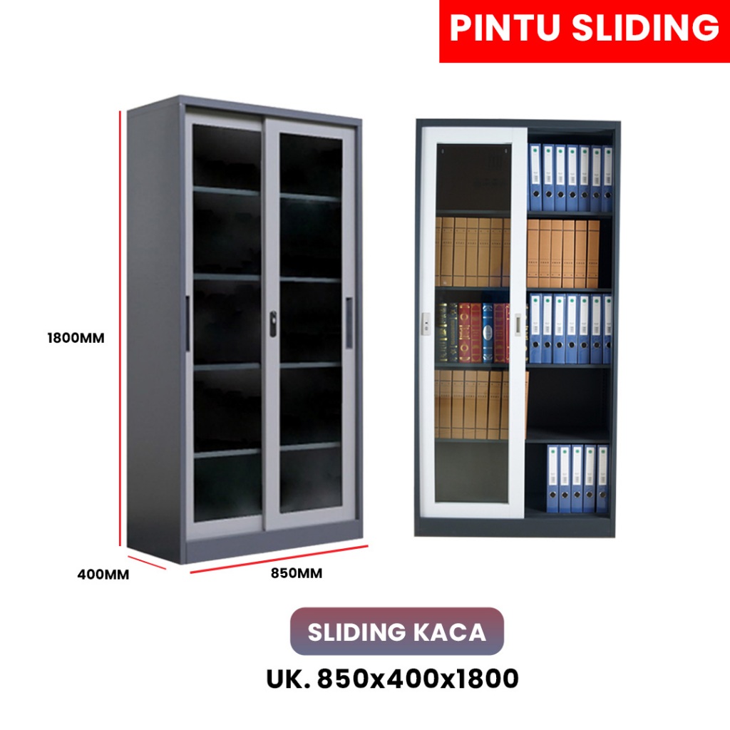 Lemari Arsip Besi Sliding Kaca 2 Pintu Lemari Arsip Kantor
