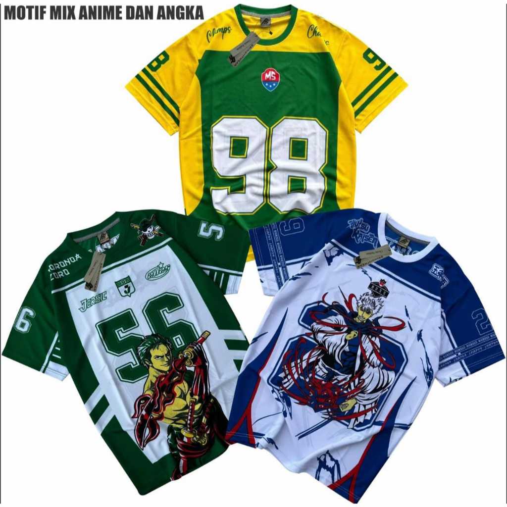 Paket 3 Kaos Jersey Dry Fit Anime Size L XL XXL Dewasa Printing Sublimasi Anime Sport Anti Lengket