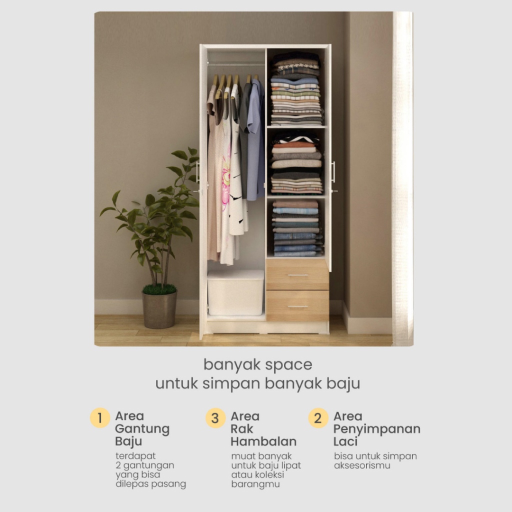 Pira Metropolis Alana 2PL Lemari Pakaian 2 Pintu
