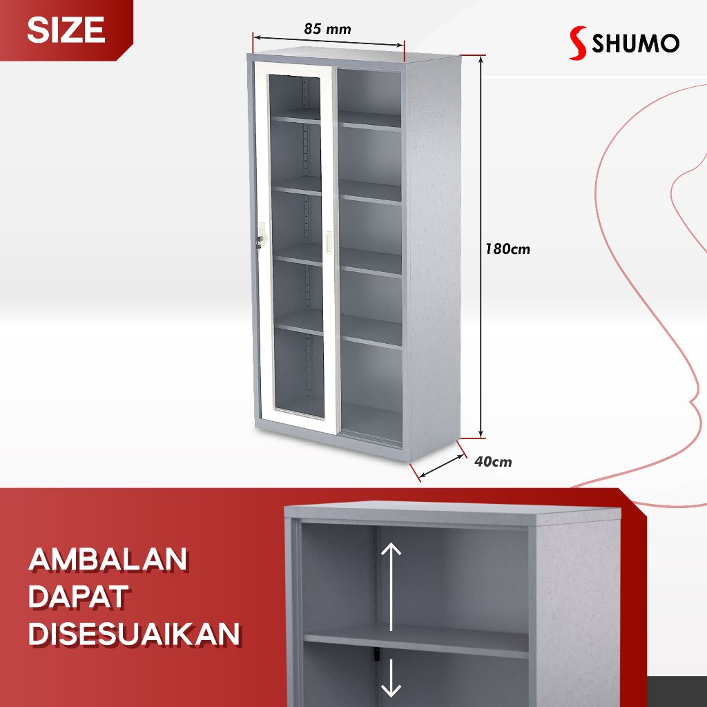 Citra Furniture SHUMO ® Lemari Arsip Besi 2 Pintu Sliding KacaLemari DokumenSleding Geser kacaCTR1