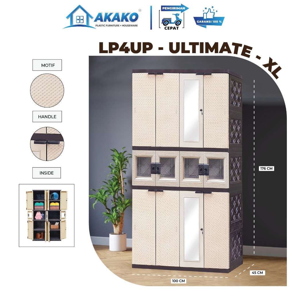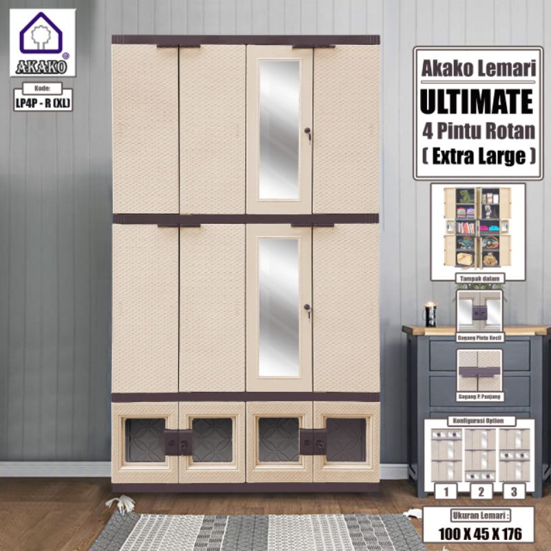 AKAKO Lemari ULTIMATE 4 Pintu Rotan Extra Large kode LP4PUPRXL
