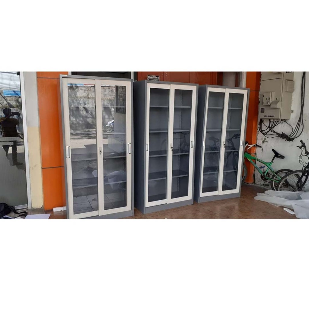 Lemari Arsip Besi Sliding Kaca 2 Pintu Lemari Arsip Kantor