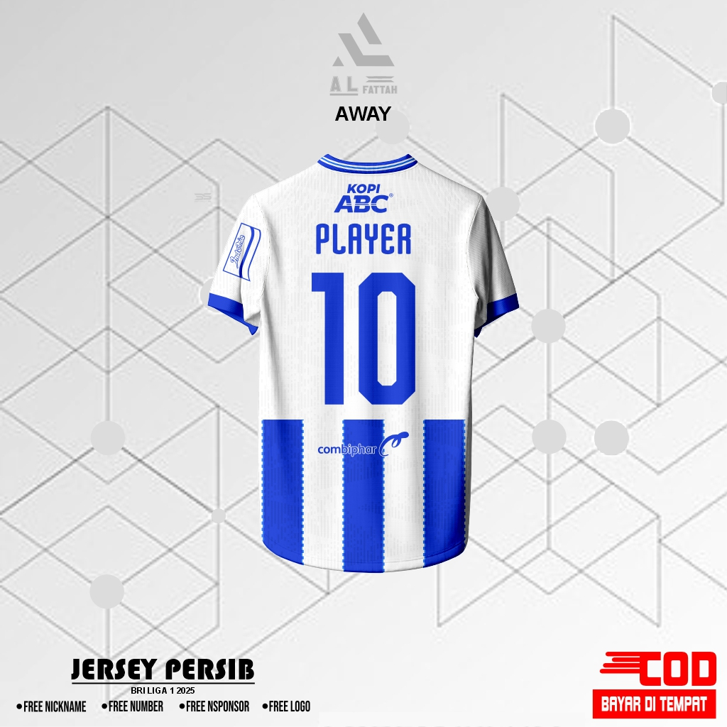 Jersey Bola Persib Bandung Away Putih Terbaru 2025-2026 Custom Nama Anak Dewasa Premium