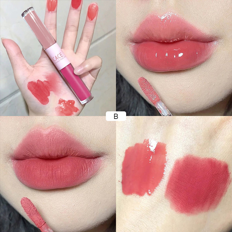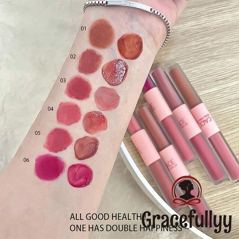 []CACE 2 IN 1 Dual-ended Lipstick Matte Velvet High Pigment Tahan lama Lip Gloss Tahan Air