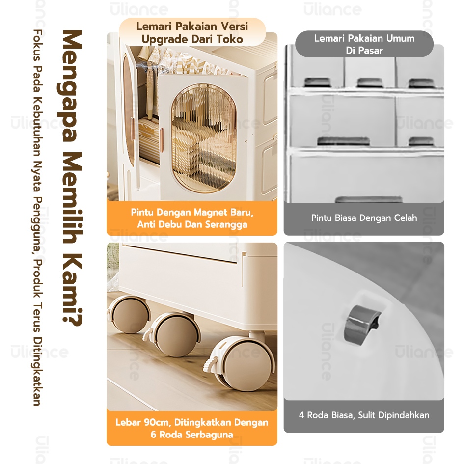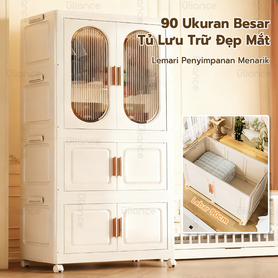 Ekstra Besar 90cm ULIANCE Lemari Baju Bayi Anak Plastik Lemari Pakaian Estetik Minimalis Dengan Roda
