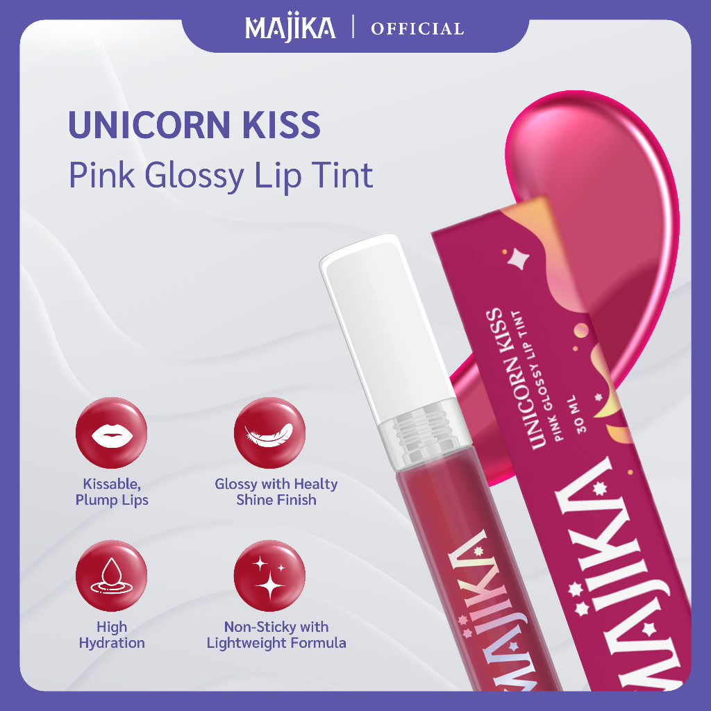 MAJIKA Unicorn Kiss Pink Glossy Lip Tint | 3 ML | Tekstur Ringan I Glossy I Plumpy I Juicy