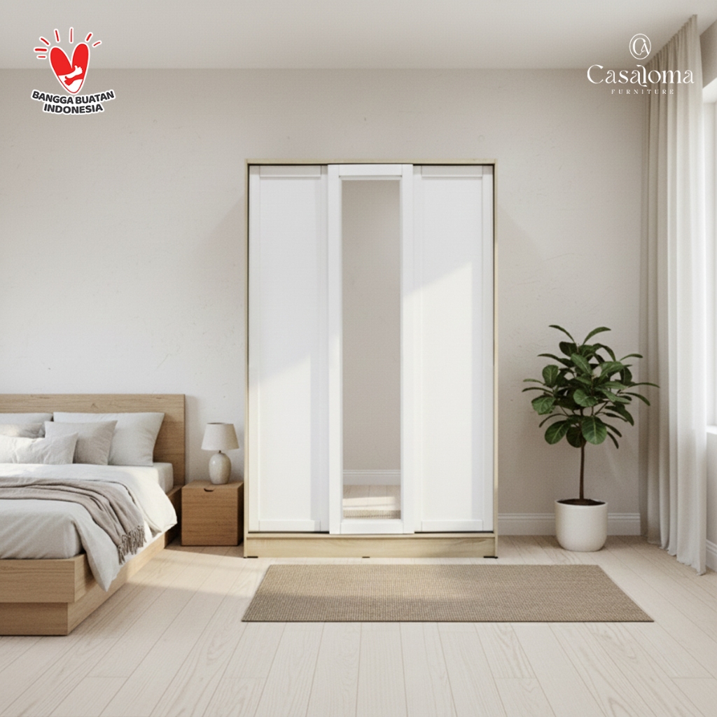 Casaloma Furniture Lemari Sliding Pakaian Baju 34 Pintu Japandi Murah