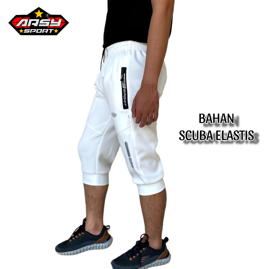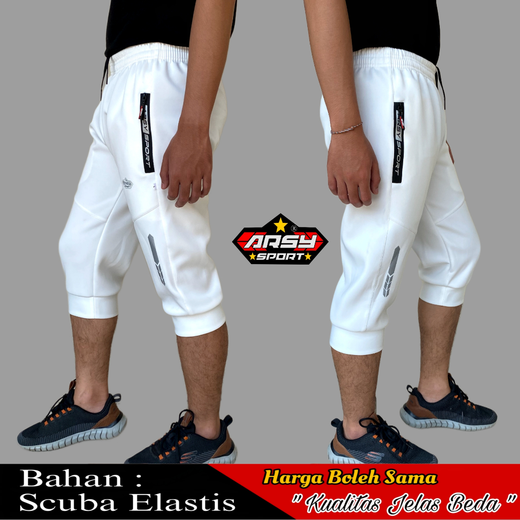 Arsy Sport Celana Running Pria Wanita - Celana Sontog 3/4 Fitnes Gym Bahan Scuba Elastis SS01