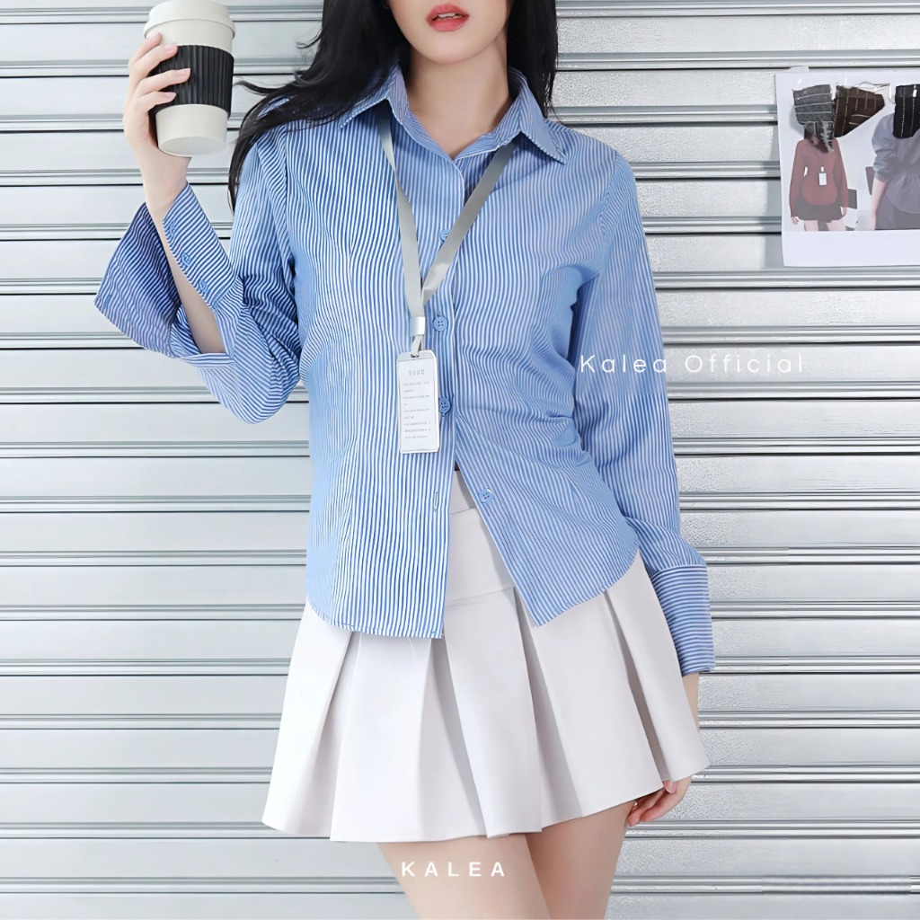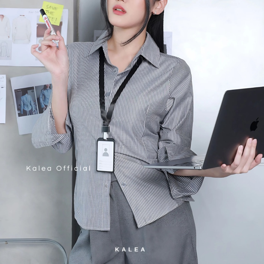 Kemeja Wanita Kylie Shirt Salur Lengan Panjang Kerja Fitted Stripe Slim Fit Katun
