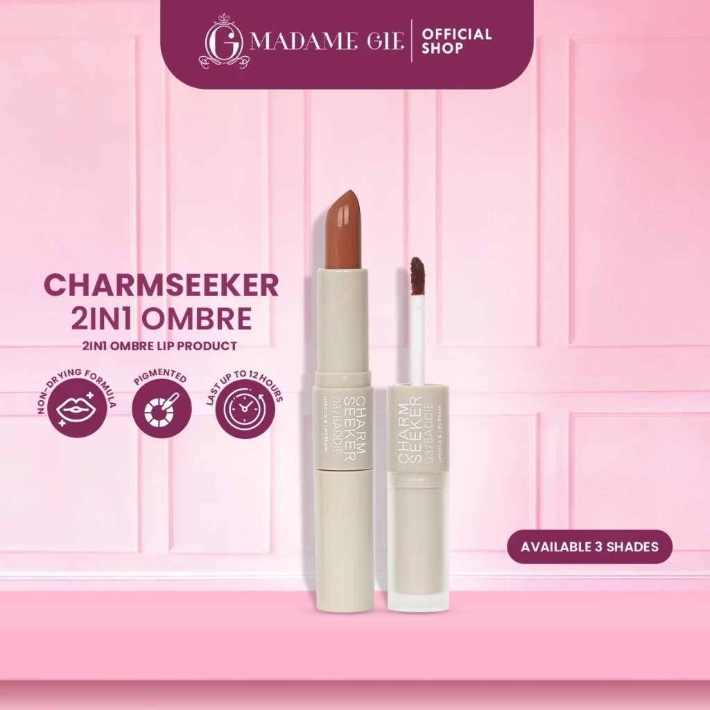 (FREE COLOR P LIP) Madame Gie Charmseeker 2in1 Ombre - Make Up Lipstick Lip Matte Cream Soft Matte Finish Superstay