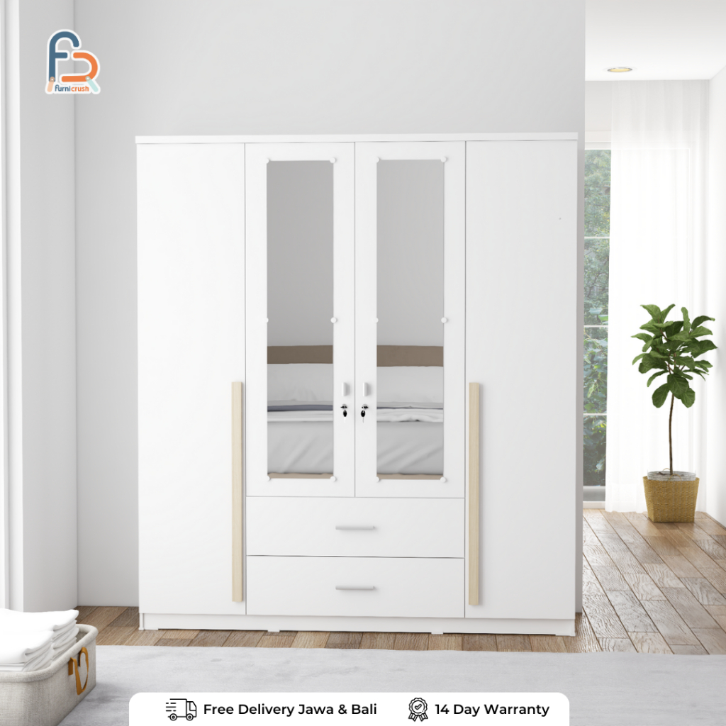 Furnicrush Lemari Pakaian 4 Pintu Lemari Full Rak Lemari Putih Lemari Full rak dan Laci CAMILLE WDF 401