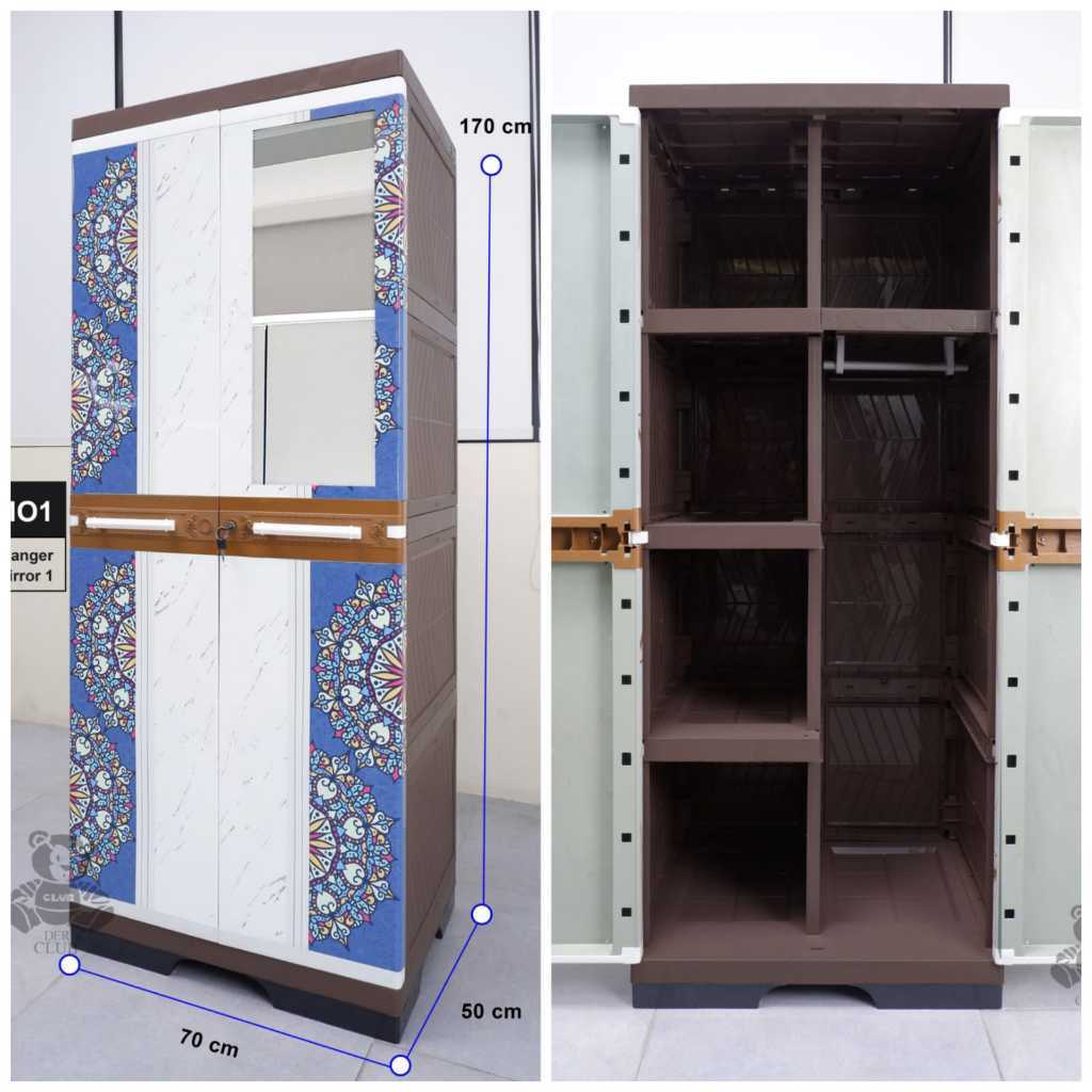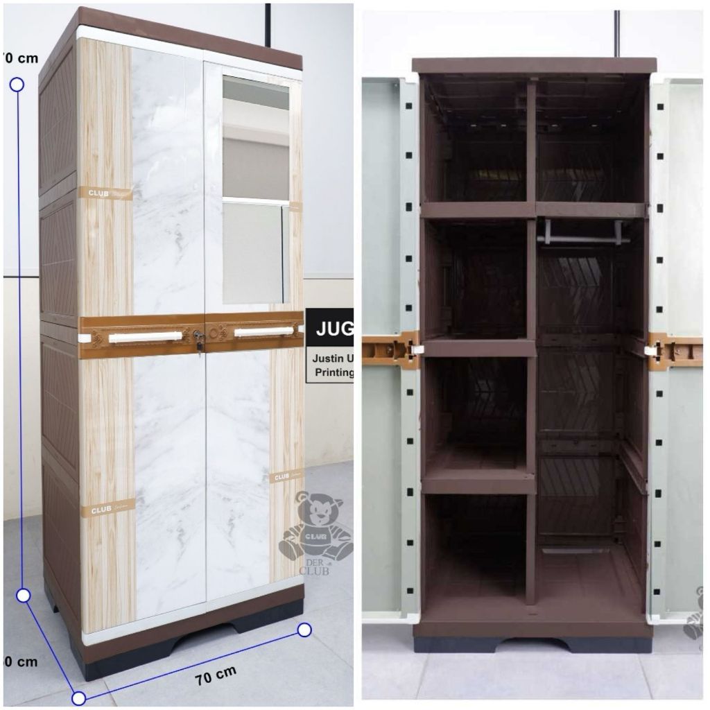 Lemari Plastik Club 4 Susun Hanger + Rak Rak Pakaian Lemari Serbaguna Justin Kunci Mirror 1 Lemari Pakaian Club Gantung Rak Baju Modern Minimalis