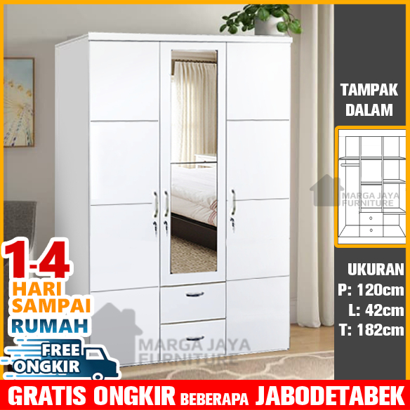 TERLARIS BEST SELLER Lemari Pakaian 3 Pintu Laci Minimalis Hitam Putih